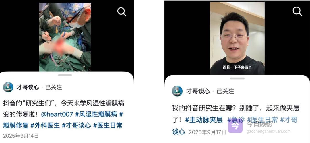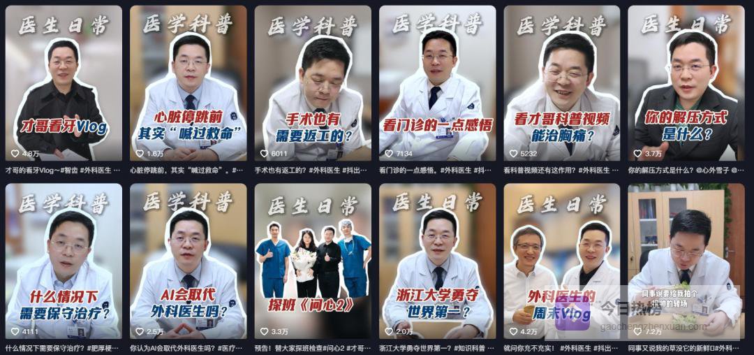 在抖音,还有无数像程才一样的医疗从业者,利用业余时间做科普。