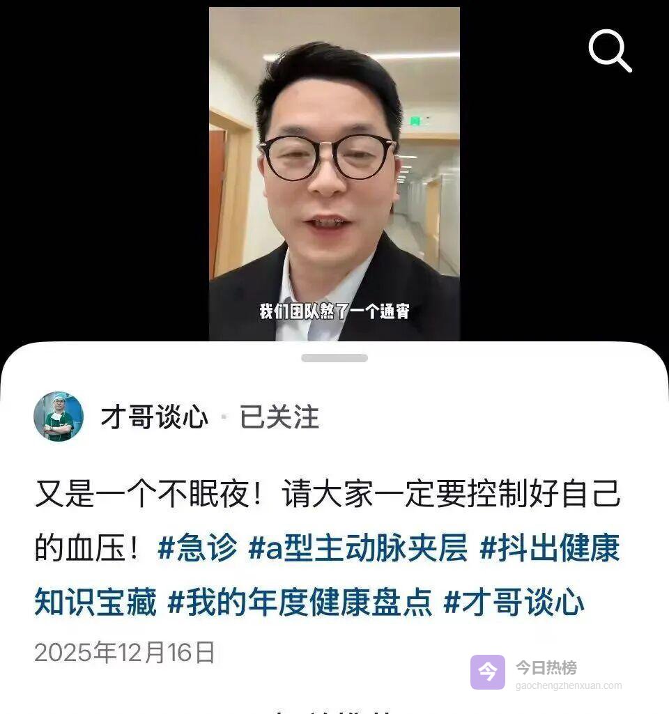 谈及2026年的心愿,他说得格外纯粹:“希望手术死亡率能再创新低,这是我作为医生的终极追求。” 而对于短视频科普,他则保持清醒:“维持现状就好,不能被流量裹挟,能兼顾科普初心和传播面,就很好。”