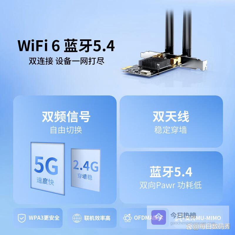 达而稳的这款PCIe网卡,凭借其600M+286M的无线上网速率,让上网体验迅速提升。采用最新的Wi-Fi 6协议标准,能够有效缓解网络拥堵,为游戏、直播等需求提供了卓越的支持。此外,外置的5Dbi可拆卸天线设计,使得信号覆盖范围宽广,无死角,让你在家中各个角落都能畅享快速网络。