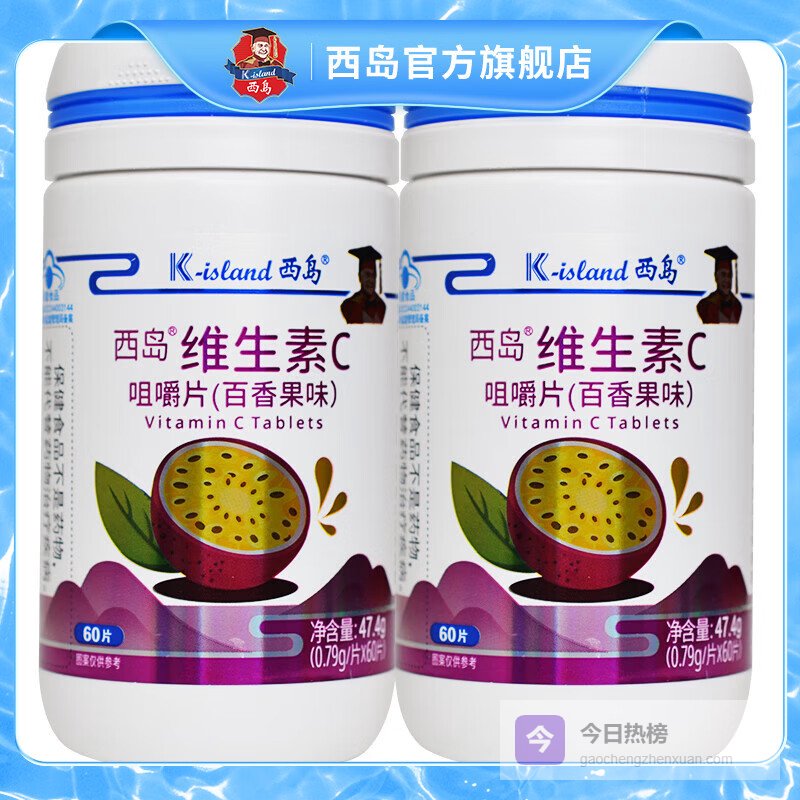西岛维生素C咀嚼片(百香果味)儿童孕妇乳母成人中老年人 维C咀嚼片(百香果味) 60片*2瓶¥