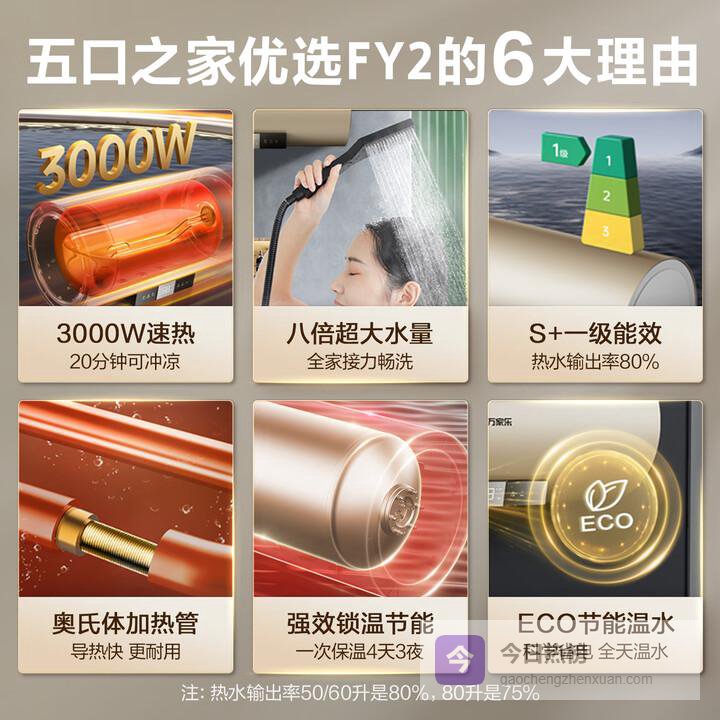 ②一级能效标准,热水输出率高,节能效果显著,降低能源消耗。
