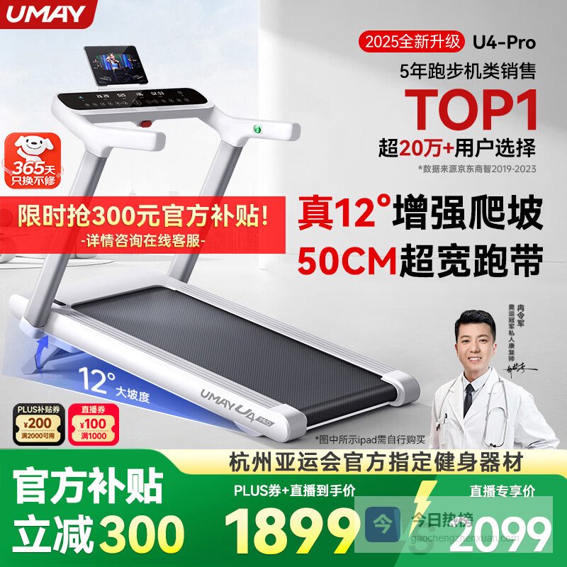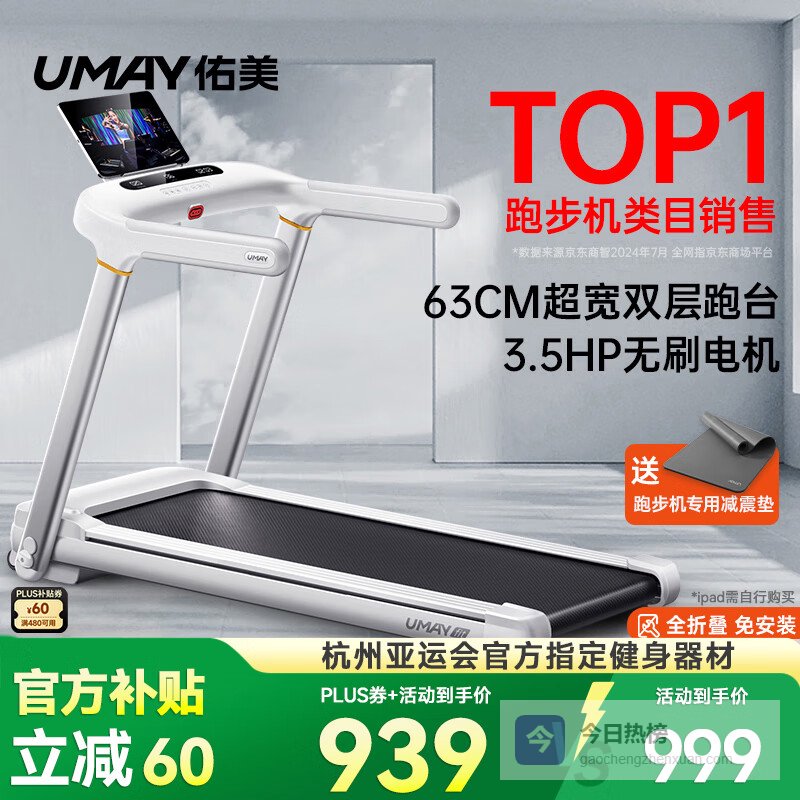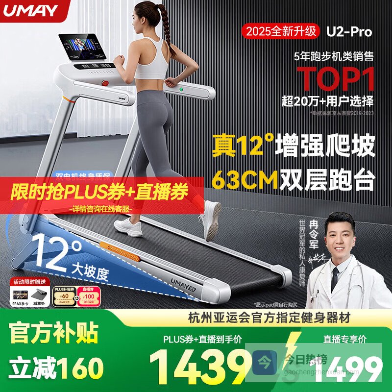 佑美U3H 电动坡度版跑步机家用降噪智联可折叠走步机免安装直播互联¥
