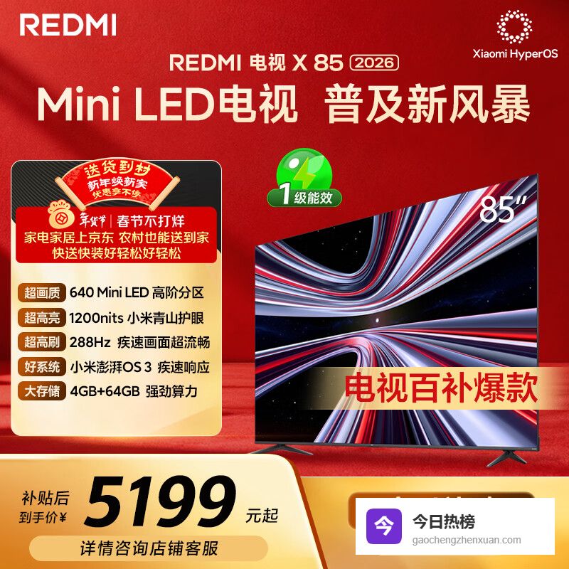 【京东自营】小米REDMI电视X2026款85英寸MiniLED288Hz1200nits4GB+6¥
