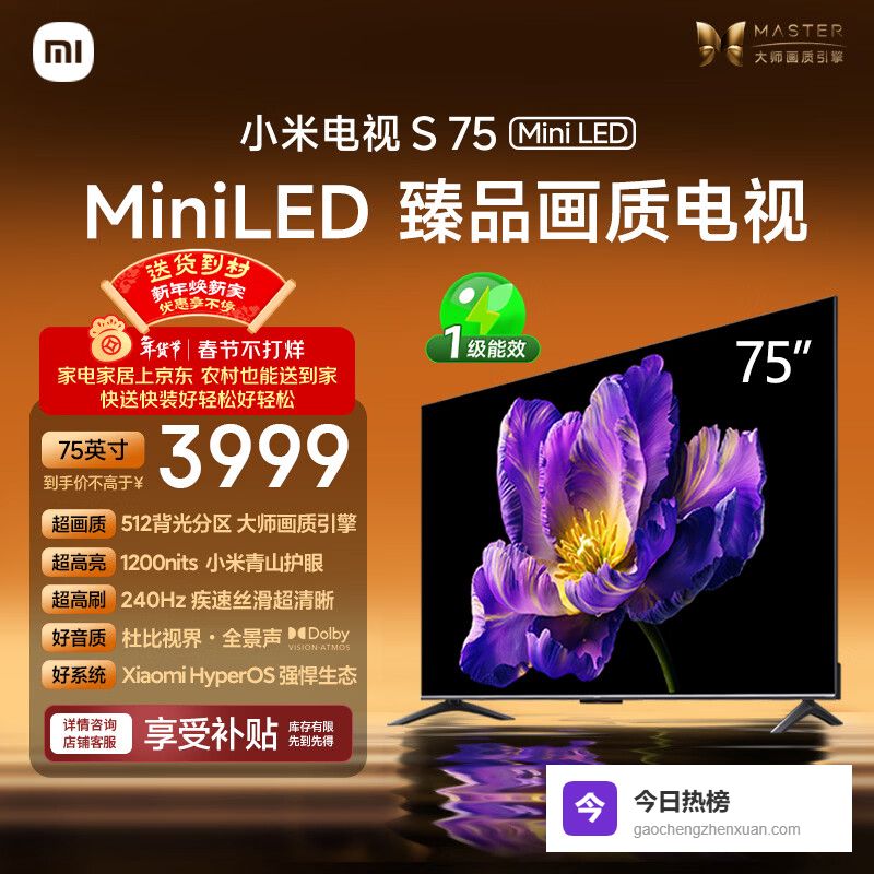 【京东自营】小米电视S75MiniLED【销量10万+】75英寸240Hz高刷512分区1200ni¥