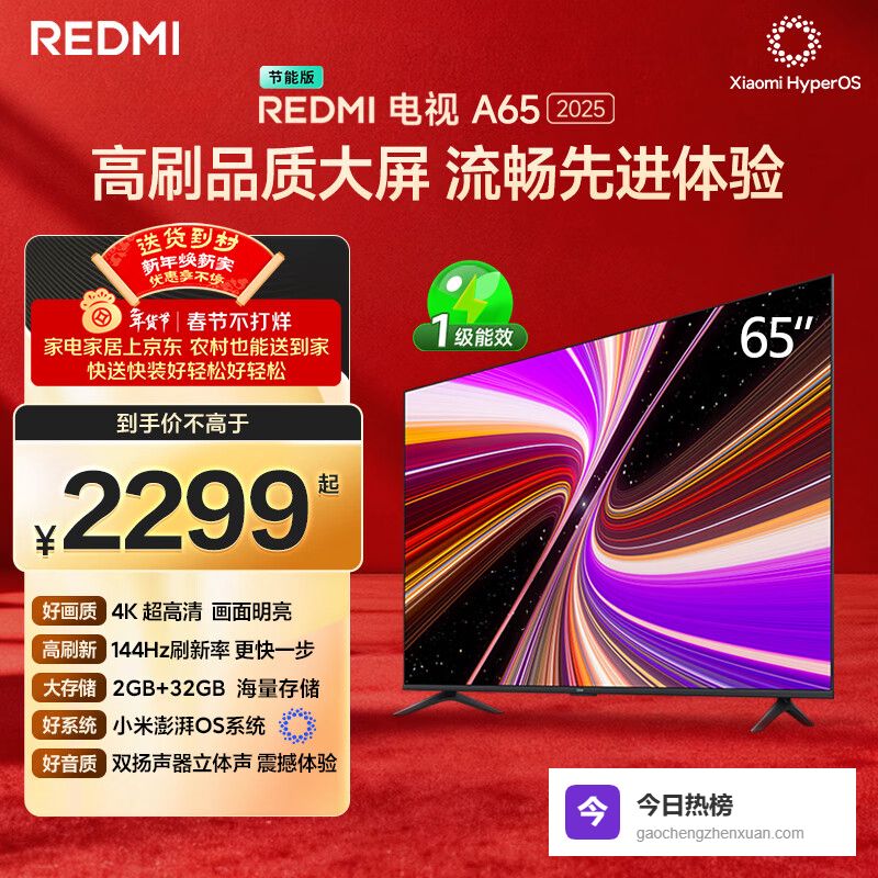 【京东自营】小米REDMI智能电视A6565英寸144Hz高刷2GB+32GBL65RB-RAE电视¥