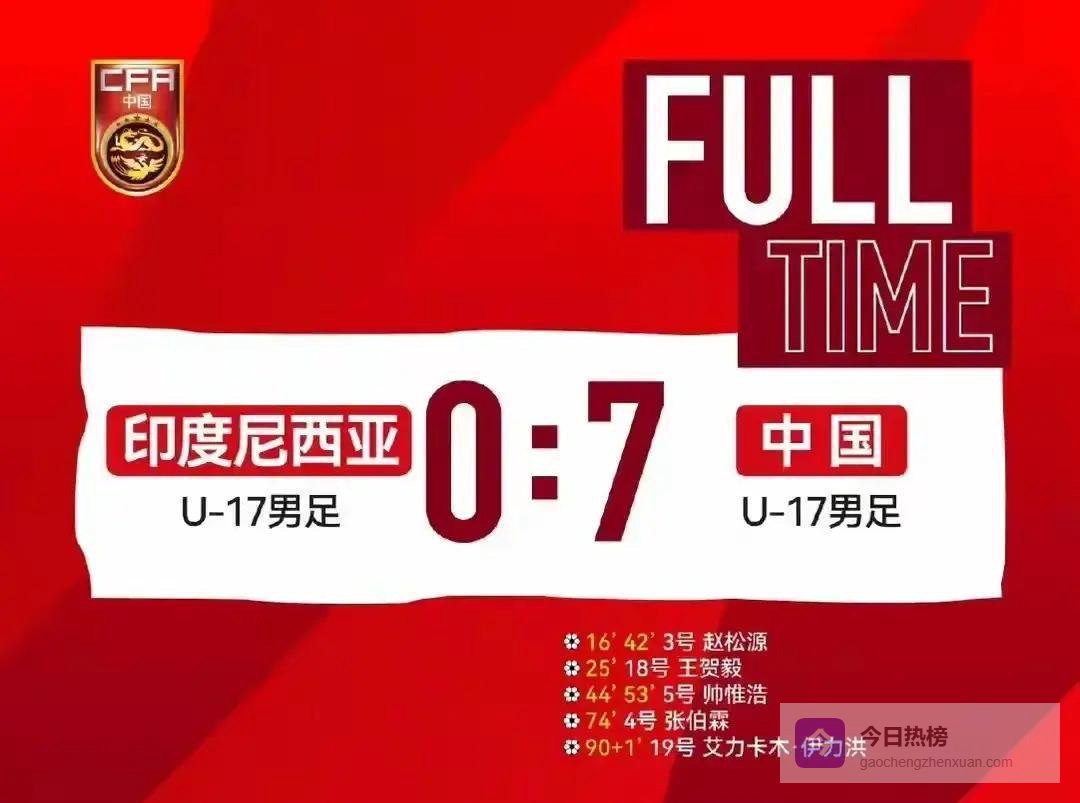 7比0,这比分一出来,真不少人第一反应是:是不是看错了?而且对手还是刚在亚洲杯出线的印尼同龄队,中国U17这次在客场一脚把悬念踢没了,上来半场4球,下半场再冲3个,还没让对面找到一次真正像样的反击,这场球的含金量,真没那么简单。