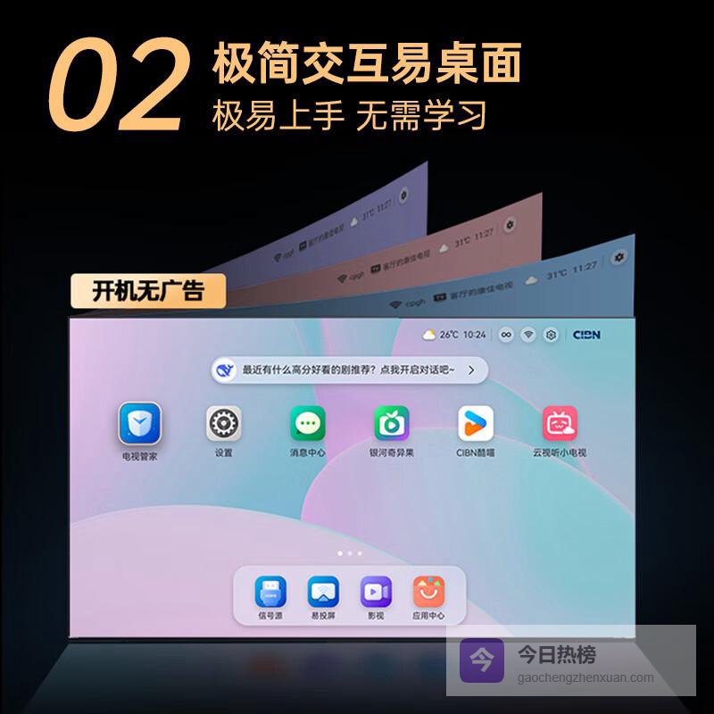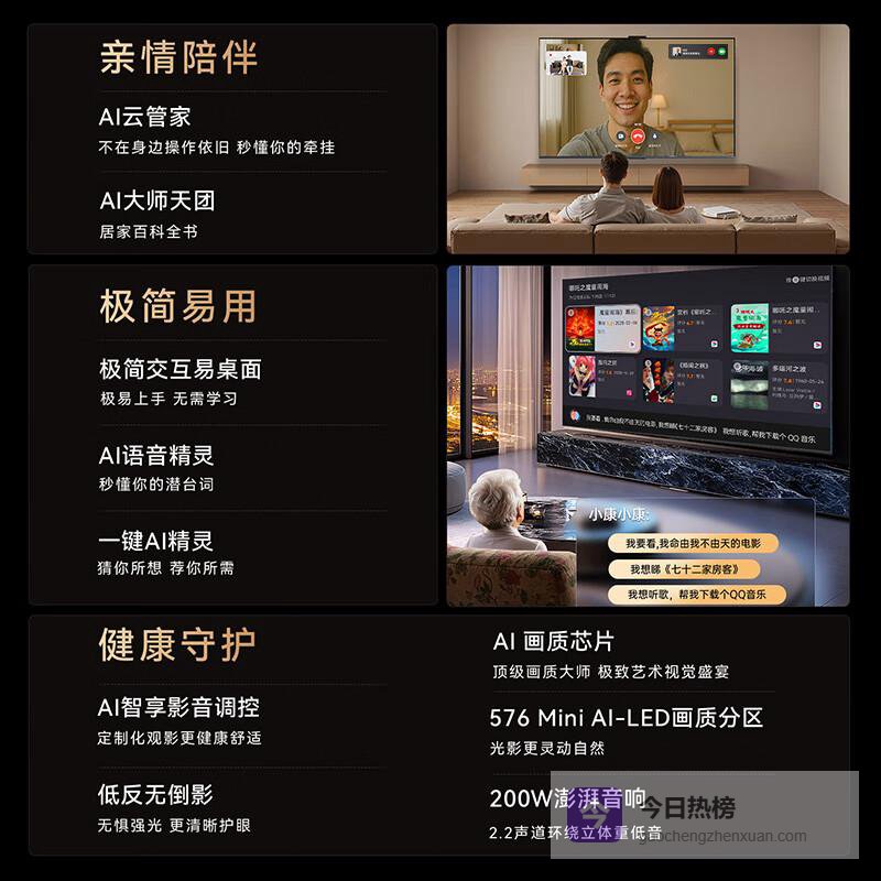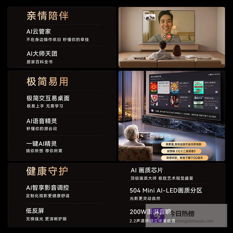 4️⃣智能系统便捷操作:内置智能平板功能,让用户轻松访问各类应用程序及流媒体内容,丰富的娱乐选择随手可得。智能语音助手也为生活增添了便利,让观看体验更加人性化和个性化。