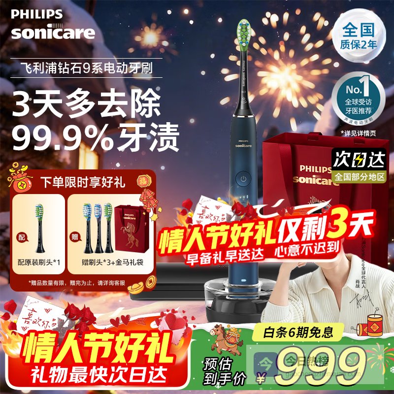 飞利浦(PHILIPS)【肖战推荐】Sonicare电动牙刷钻石刷9系 三档力度四种模式送男友女友生日礼物新年礼物情人节礼物 深海蓝HX9911/62¥