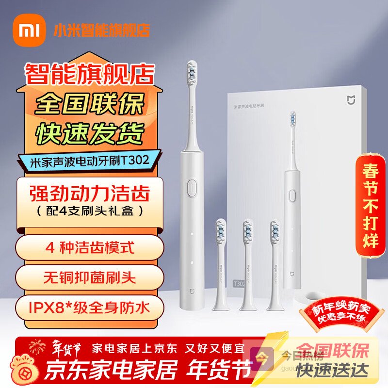 米家小米电动牙刷T302成人/学生 家用4种净齿模式 150天续航 情人节礼物推荐 米家声波电动牙刷T302 流光银¥
