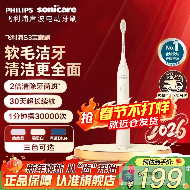 飞利浦(PHILIPS)【情人节礼物】电动牙刷 S3全新升级5效宝藏刷 专业清洁护牙 情侣礼赠男士生日礼物 【S3小羽刷丨瑞斯白】HX2471/03¥