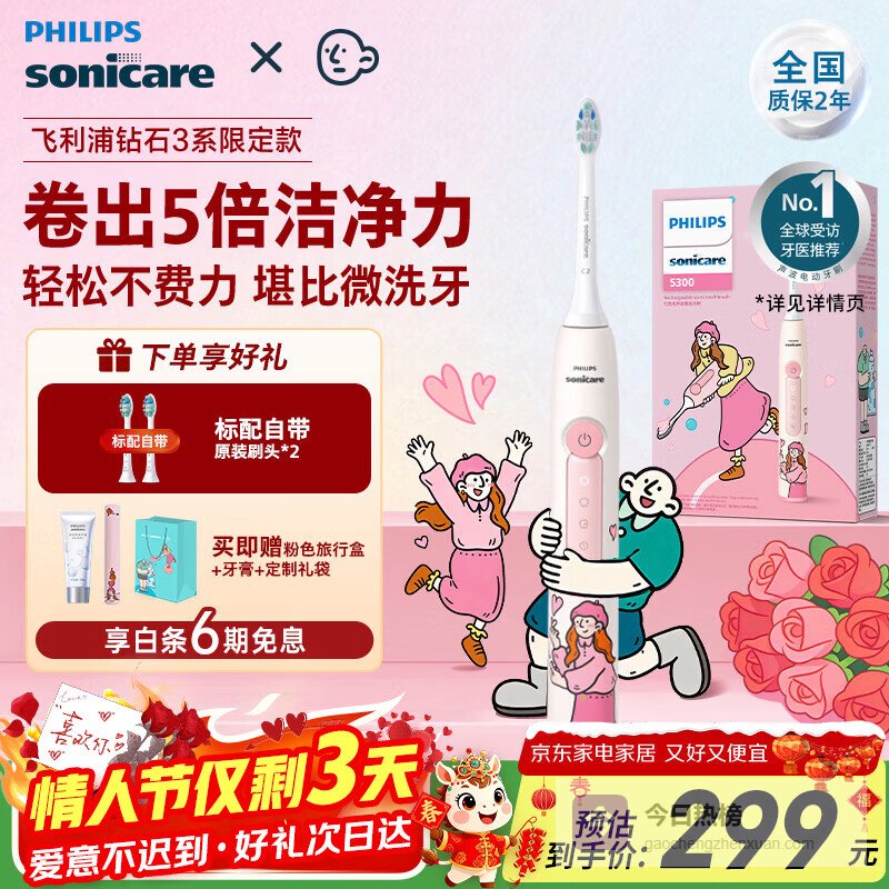 飞利浦Sonicare电动牙刷钻石3系 6730升级款微泡水流科技洗漱送男友女友生日官方旗舰店新年情人节礼物 莉莉刷¥