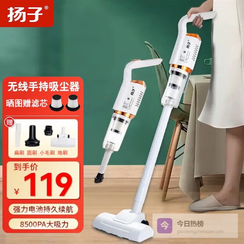 扬子无线吸尘器家用小型手持大吸力宠物吸拖洗地一体机 白色无线¥