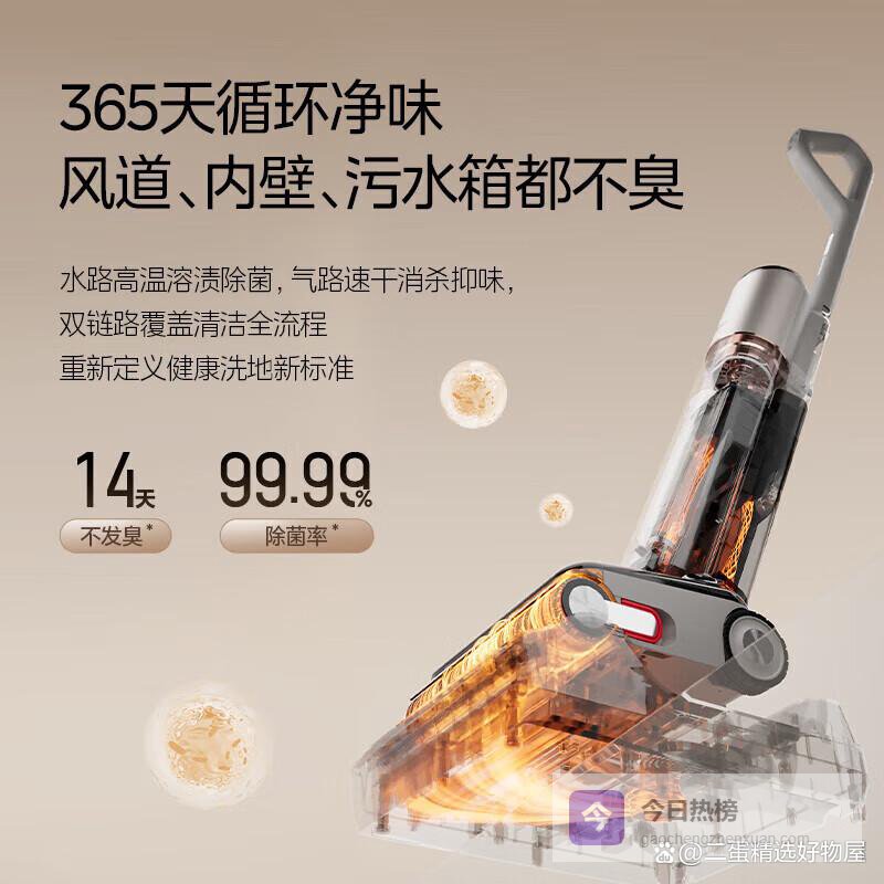 1、双系统净味黑科技:这洗地机简直是清洁界的“隐形杀手”啊!水路和气路都搞定了,80℃火山泉热熔洗,75℃热风抑菌烘,双重保障,细菌病毒都跑不掉了。异味99.99%去除率,用起来就一个字:爽!