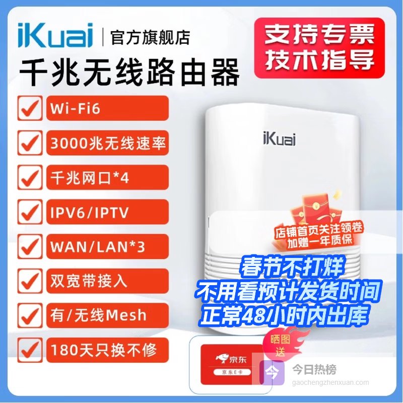 十、爱快1. 这台爱快IK-Q3000支持Wi-Fi 6标准,带来了更低的延迟和更快的传输速度。玩游戏、看高清视频,体验感还不错,几乎不用担心卡顿问题。配合160MHz大频宽,网速直接飙升,让你的小桌面成为高速路。