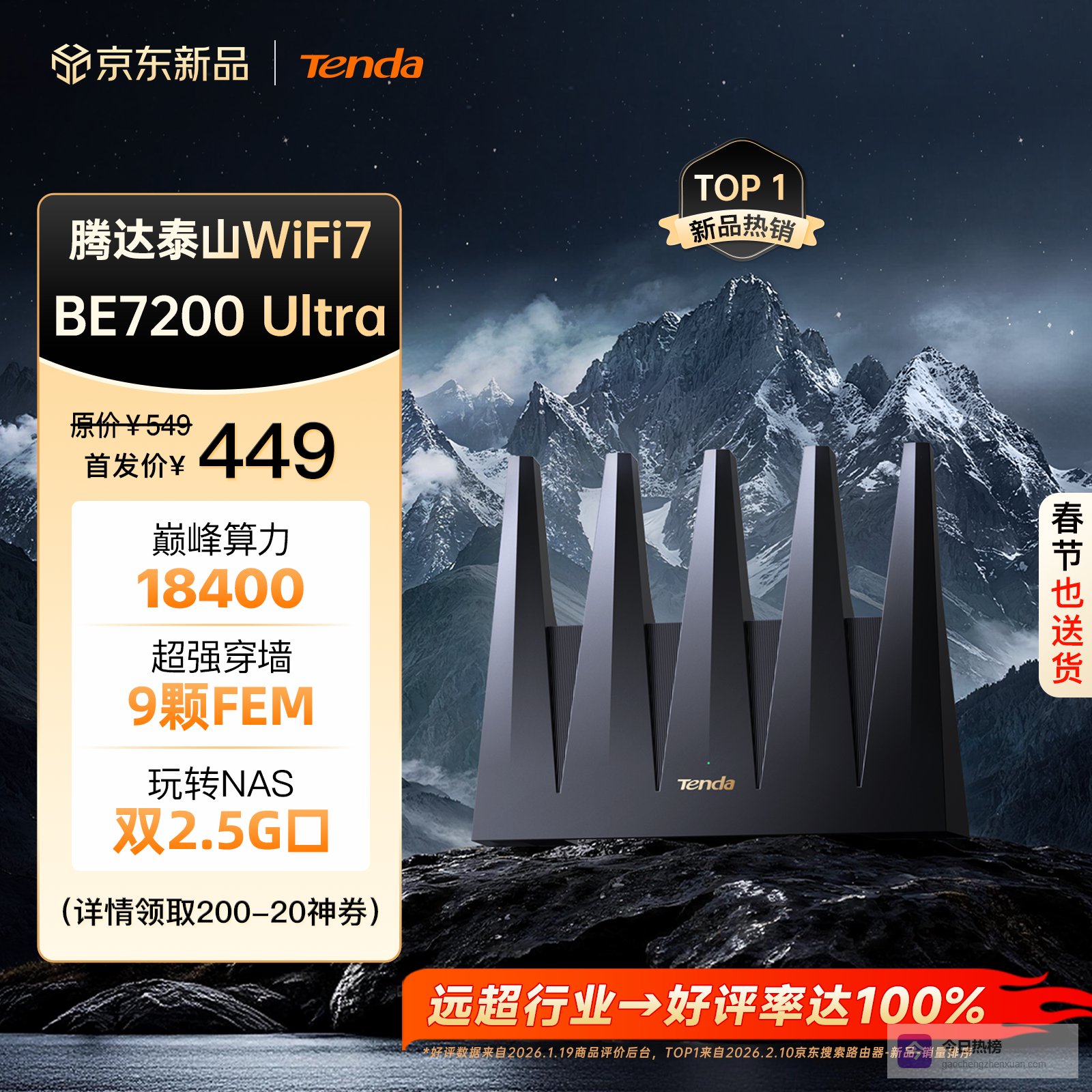 八、腾达腾达泰山BE7200 Ultra这款路由器支持WiFi 7(802.11BE),无线速率能冲到7141Mbps,网速快得让人怀疑自己的网络是不是穿越了时空。双频段同时让你的视频、游戏和隔壁邻居的下载都能同时跑起来,不用排队抢带宽,体验感还挺顺畅。