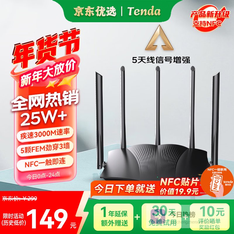 Tenda腾达路由器千兆WiFi6高速满血穿墙王信号增强无线家用Mesh全屋WiFi全千兆网口路由器AX12Pro¥