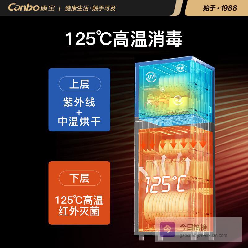 决策点1:消毒方式——杀菌效果的根本参数解析:消毒方式是消毒柜的“灵魂”,主流的有高温(红外线/石英管)、紫外线、臭氧,以及“组合消毒”。- 高温消毒:通过120℃以上高温杀灭细菌,适合耐高温餐具(陶瓷、不锈钢、玻璃),但对塑料、木质餐具不友好(易变形),且耗电较高;- 紫外线消毒:利用254nm波长紫外线破坏细菌DNA,杀菌无残留,但穿透力弱,只能杀灭物体表面细菌,且需要长时间照射(通常≥30分钟);- 臭氧消毒:臭氧强氧化性杀菌,适合不耐高温的餐具(塑料、木质),但臭氧浓度过高会有异味,且对呼吸道敏感人群不友好;- 组合消毒:比如“紫外线+臭氧”“高温+紫外线”“高温+臭氧+紫外线”,是目前最推荐的方式,覆盖范围广,杀菌效果更彻底(比如紫外线+臭氧能兼顾内外杀菌,高温+紫外线适合深度杀菌)。