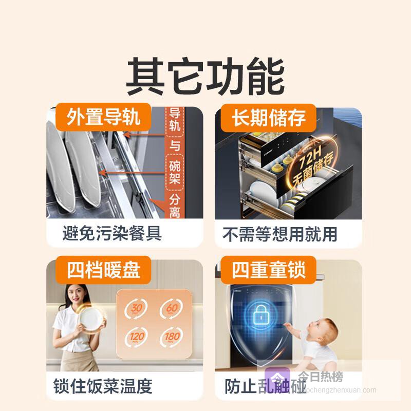 特别需要入手的群体:- 有宝宝或老人的家庭:婴幼儿免疫力弱,老人肠胃敏感,餐具消毒能大幅降低病菌感染风险(比如幽门螺杆菌、大肠杆菌等);- 厨房空间紧凑的家庭:嵌入式设计能“藏”进橱柜,不占用台面空间,让厨房更整洁,尤其适合小户型;- 餐饮用具较多的家庭:比如经常在家聚餐、使用分餐制,或者有宝宝餐具、刀具砧板需要单独消毒的场景,消毒柜能分类收纳,避免交叉污染。