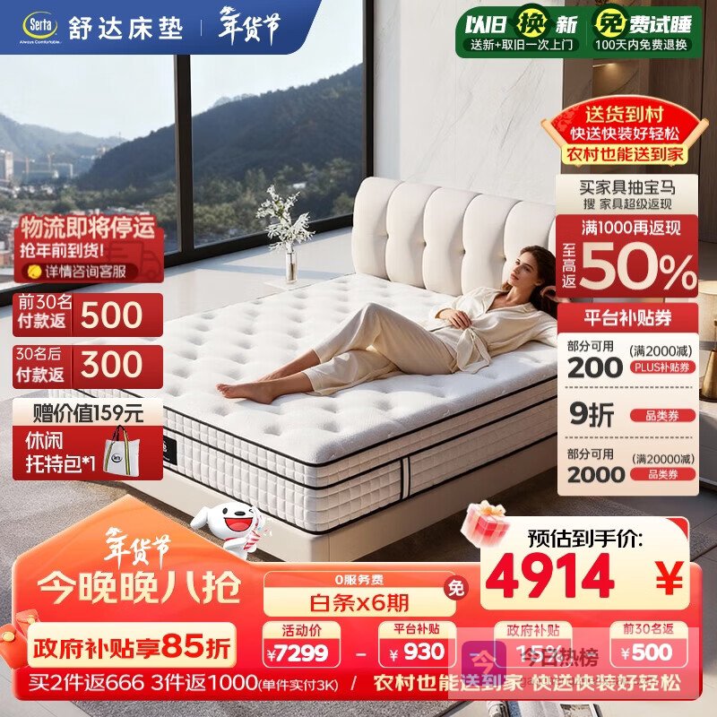 【京东自营】舒达致眠乳胶核心技术弹簧超体线下同款床垫1.8*2米适中睡感¥