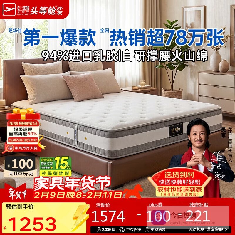 【京东自营】芝华仕床垫D026明星垫90%高纯度乳胶独袋弹簧席梦思家用1.8x2米软硬适中¥
