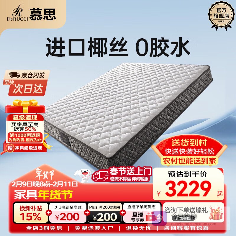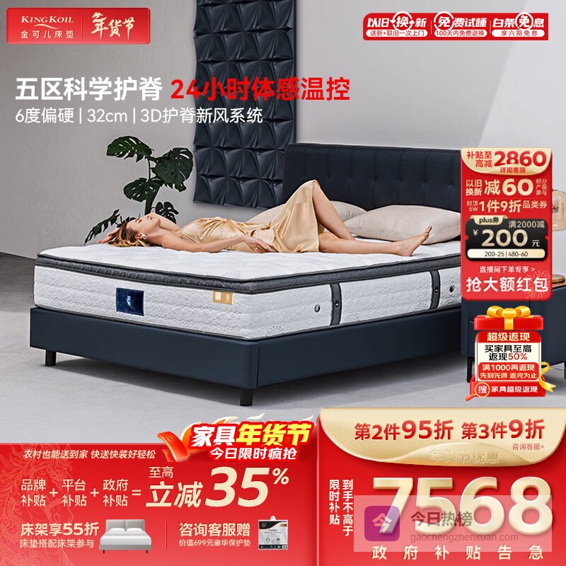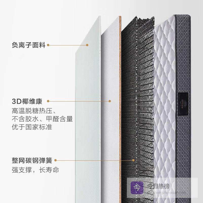 核心卖点:双重支撑设计,结合3D椰维康和整网高碳钢弹簧,提供完美硬度,有益脊椎健康。