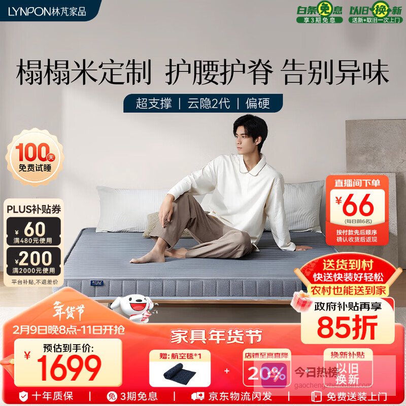 【京东自营】林芃家品林芃云隐2代乳胶椰棕定制护脊棕榈棕垫榻榻米床垫1.35x2米偏硬¥