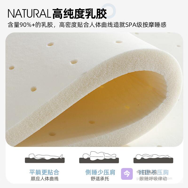 高纯度乳胶:90%以上的天然乳胶成分,提供卓越回弹性,完美贴合身体曲线,有效舒缓压力,高质量睡眠不再遥不可及。
