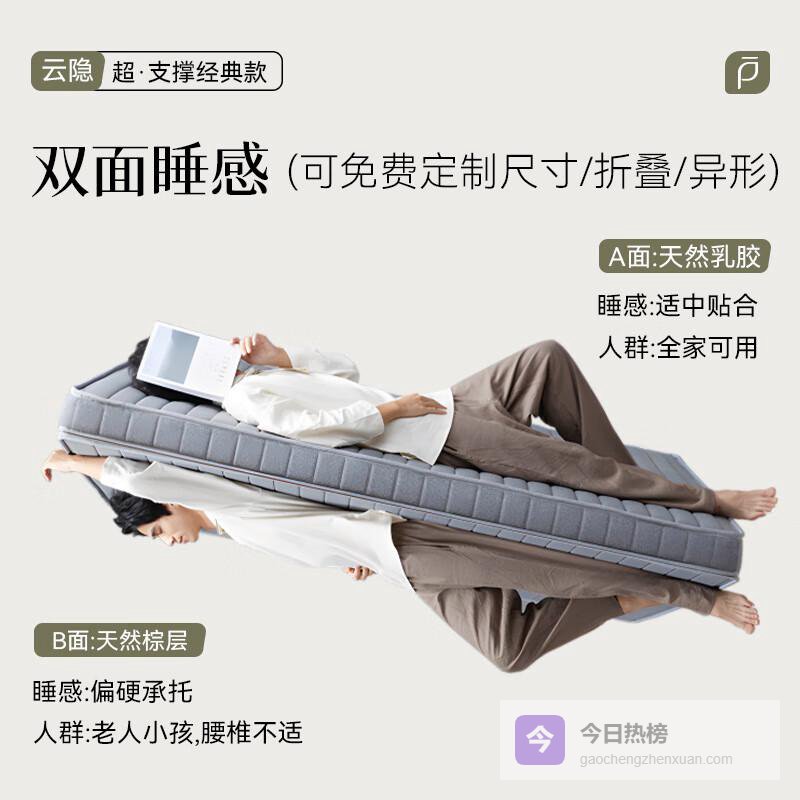 核心卖点:采用双面设计,提供舒适的乳胶和代棕选择,完美满足每位用户的不同睡眠需求,是提升睡眠质量的理想之选。