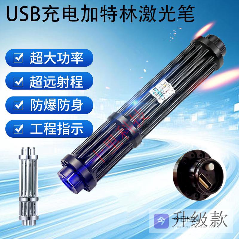 鼎錱usb蓝光加特林激光笔大功率镭射激光手电户外防身激光炮航海指示 黑色升级款USB铝盒¥