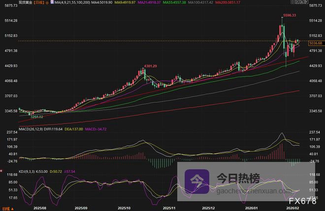 汇通财经APP讯——国际金价从高位小幅回落,现货黄金周二(2月10日)收跌0.7%至每盎司5023美元,一度引发投资者担忧。然而,这波看似平淡的回调背后,实则暗流汹涌。在关键的美国就业与通胀数据公布前夕,市场正在经历一场蓄势待发的“数据风暴”。与此同时,地缘政治局势持续升温,美元走软与降息预期交织,共同绘制了一幅复杂而充满机遇的黄金投资图谱。黄金的短期波动究竟是上涨途中的健康盘整,还是趋势逆转的先兆?周三(2月11日)亚市早盘,现货黄金震荡微涨,目前交投于5040美元/盎司附近,本交易日重点关注美国非农就业报告。