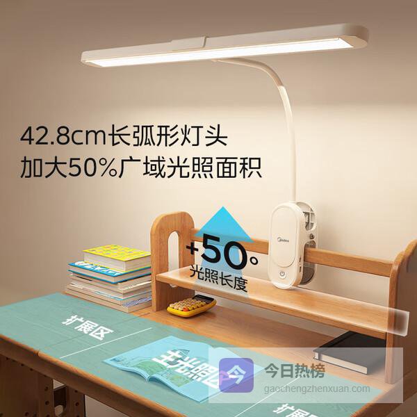 四、美的▶ 护眼光源:这款美的台灯采用LED光源,光线温暖自然,减少蓝光伤害,长时间使用眼睛也不容易疲劳。它的防蓝光指数是RG0,对眼睛基本没害处,特别适合经常看书学习或办公的人使用。