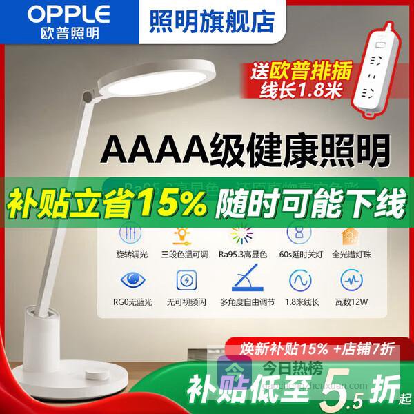 八、欧普照明▶ 专业护眼标准:这款台灯达到了AAA级的专业读写标准,为孩子的视力健康保驾护航。光线既亮又柔,不会刺眼,也能有效减少眼睛疲劳,让孩子安心学习、阅读和写作业。