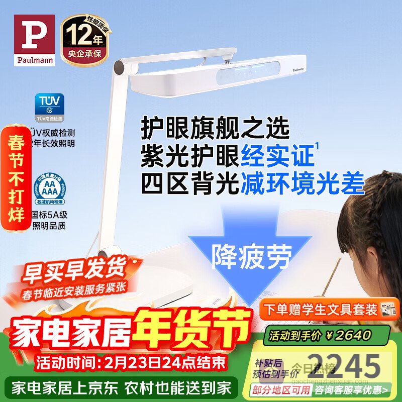 三、Paulmann P▶ 防蓝光护眼:这款台灯采用防蓝光技术,能有效过滤有害的蓝光,减少对眼睛的伤害。它还通过紫光激发,主动保护视力,缓解眼疲劳,让你长时间用眼也不会觉得特别累。