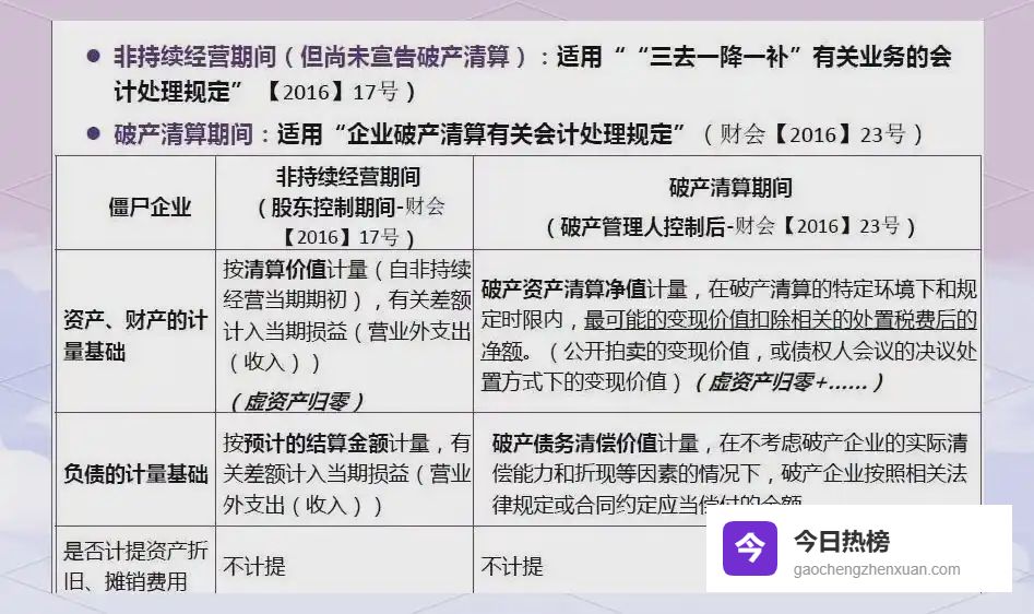 至此,企业财务报表的三大场景——持续经营、非持续经营、破产清算——全部被《企业会计准则》《“三去一降一补”会计处理规定》与23号文“三足鼎立”式覆盖,会计制度体系再完善一块拼图。