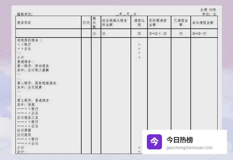 4.4 ► 债务清偿表——债权受偿“进度条” 按债权类别、清偿顺序、已偿付金额逐条列示,债权人可据此监督资金分配是否合规。
