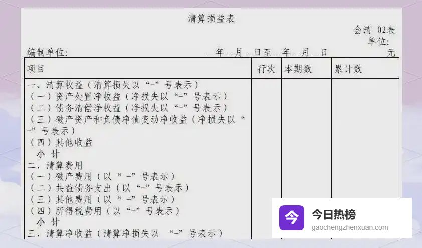 4.2 ► 清算损益表——收益、费用全记录 期间发生的变价收益、变现损失、职工薪酬、税费、资产处置收益等全部纳入,真实反映清算期间“赚了还是赔了”。