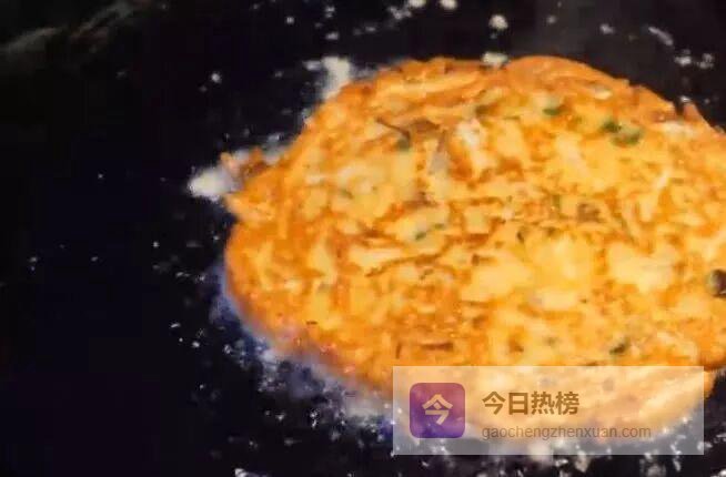 摊主是一位白发大妈,退休后把厨房搬到街边, 把炸饼当“日课”。她自嘲:“没别的本事,就是会调面糊、控火候。”一句话,却把几十年的生活经验熬成了金黄。面糊里掺了新鲜时蔬汁, 既当天然色素,也添了一缕清甜;油温控制在170℃, 保证外皮焦香却不糊底。