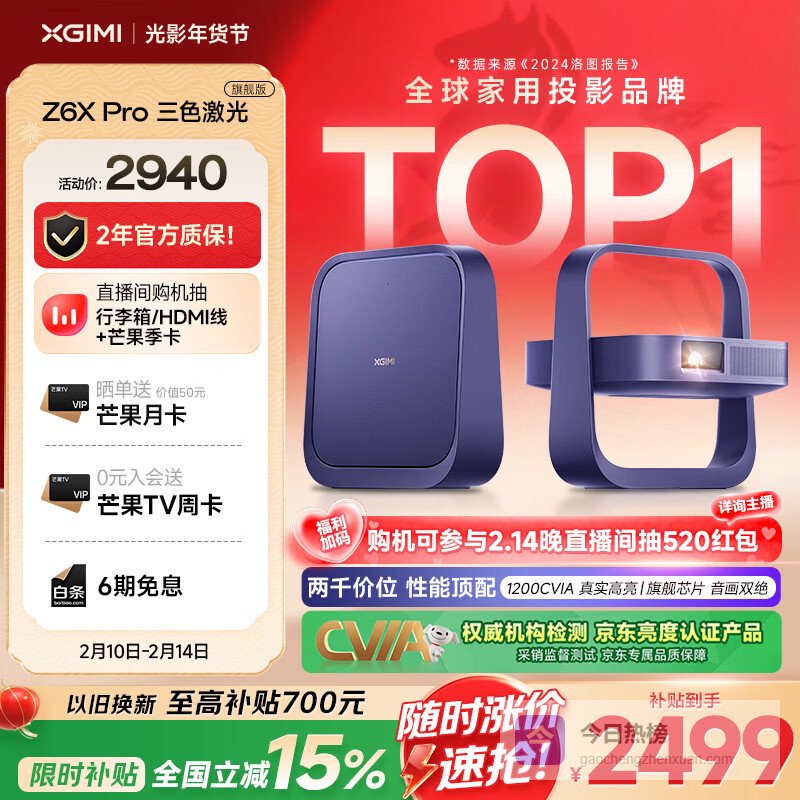 【京东自营】极米Z6XPro三色激光旗舰版1200CVIA家用投影仪轻薄投影机高清一体式云台2年质保¥