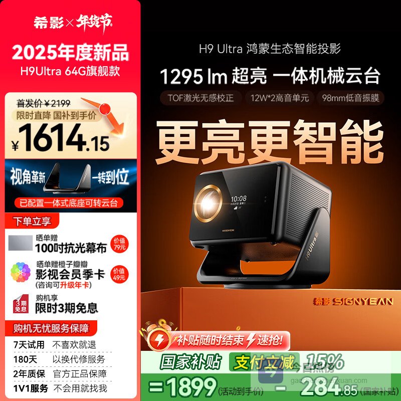 【京东自营】希影H9Ultra家用投影仪超高清卧室投影机家庭智能影院TOF画面自动校正一体式机械云台¥