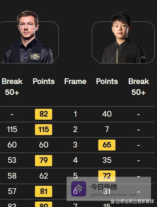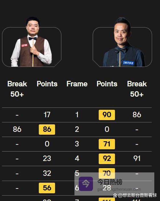 从全场的数据统计来看,丁俊晖仅仅打出一杆50+、傅家俊则是打出了一杆破百和两杆50+,面对傅家俊这样的老将,而且是状态不怎样的球员,丁俊晖也还是不能够赢球,这也意味着,丁俊晖再世锦赛之前可能要跌出前16、有可能要去打世锦赛的资格赛,要知道,接下来,丁俊晖将会有两个月的时间无赛可打。