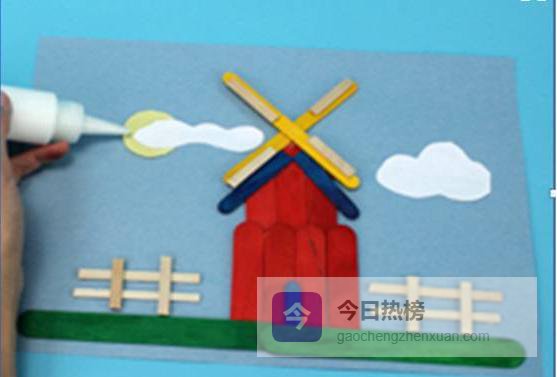全部粘好后,把画举到眼前——屋顶的风车轻轻晃动,栅栏投下斑驳影子,天空云卷云舒。孩子可以对着它讲半天故事,而你只需准备一句“完工!”——这幅零成本、高颜值的风车装饰画就正式上墙啦!