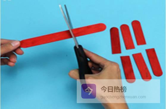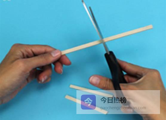 把2根雪糕棍从中间剪开,再截出若干小短棍,这些“迷你栅栏”马上就要立起来。