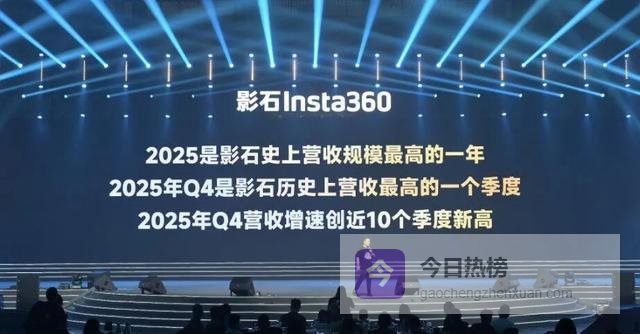 就在半年前,影石刚刚结束了长达四年的IPO长跑,正式登陆科创板。上市之后的首份年报虽未完整披露,但CEO刘靖康已在年会上提前“报喜”:2025年营收创历史新高,第四季度成为公司史上营收最高的季度,增速创近10个季度新高。