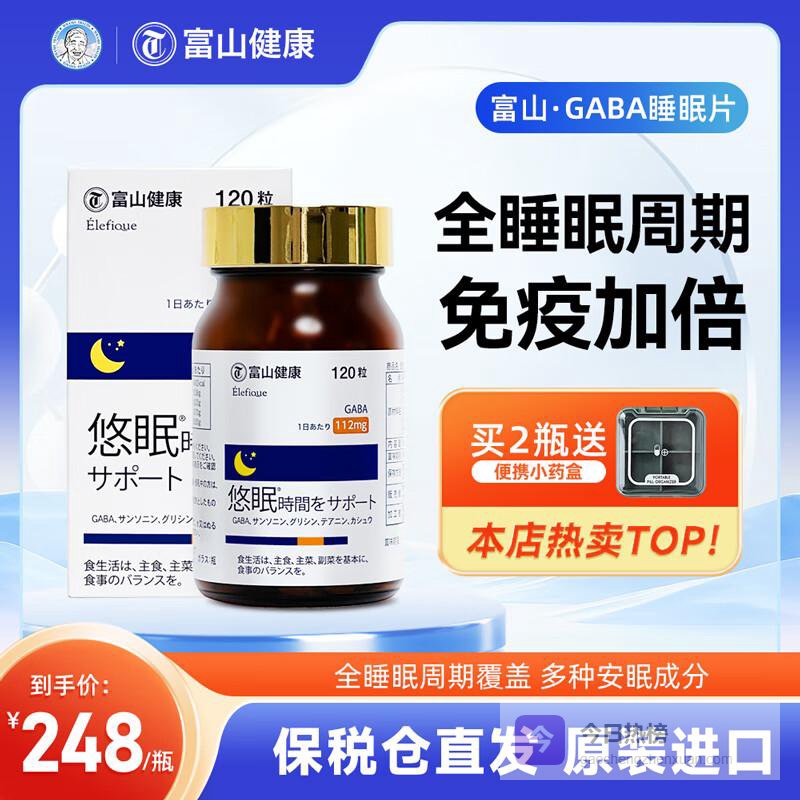 二、富山健康悠眠GaBa睡眠片:来自日本的深度睡眠方案1️⃣ 核心成分科学配比这款来自日本的睡眠片采用了γ-氨基丁酸(GaBa)作为主要成分,这是一种天然存在于人体中的神经递质,能够帮助大脑从兴奋状态转为平静。配合甘草酸、枣仁、刺五加等传统草本精华,形成了一套温和有效的助眠配方体系。
