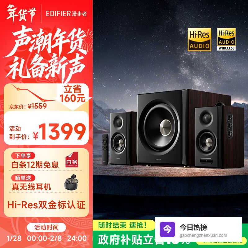 4、漫步者S201MKII这套漫步者S201MKII音箱,采用2.1声道设计,立马就能感受到那种立体环绕的氛围。它还通过了Hi-Res双金标认证,无论是无线还是有线连接,都能确保高解析音频播放,细节这块拿捏得死死的。加上蓝牙6.0技术和LDAC编码,无线传输也清晰稳定,听歌追剧都更过瘾。