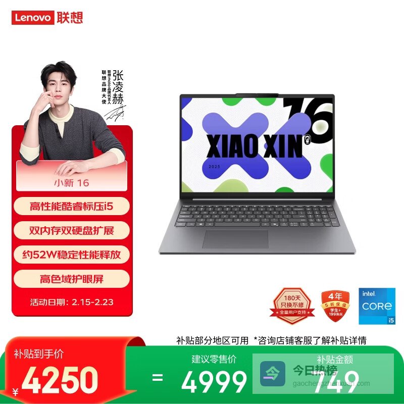 【京东自营】联想笔记本电脑小新16高性能轻薄本英特尔酷睿标压i524G512G高色域办公【国家补贴】¥