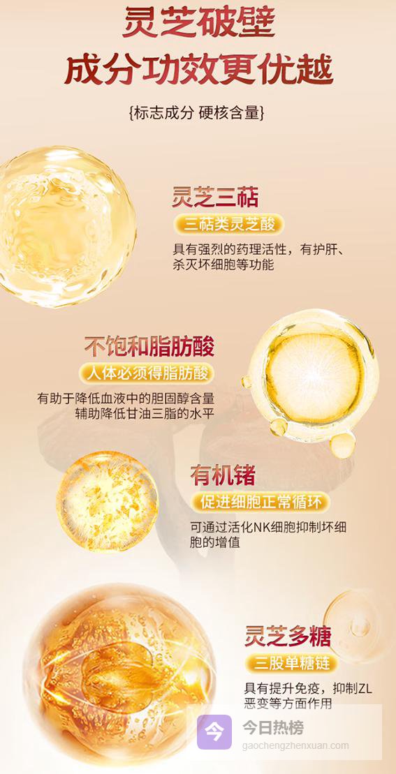 TOP4-中科灵芝孢子粉胶囊:经典胶囊剂型,北纬黄金产区高标准培植,破壁率≥99%,核心活性成分实测,专利配方,经多项认证。