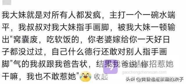 另一个网友的经历更绝。她嫂子隔三差五的让她买尿不湿,买了也不给钱,不买就阴阳怪气的。她没忍着,直接当着全家的面问她姑姑。嫂子嫌我不给孩子买东西,咱俩都是当姑姑的,我妈怎么对你的?这么多年指挥过你一次没?她姑当场黑脸了,当天就带着一大家子走了。