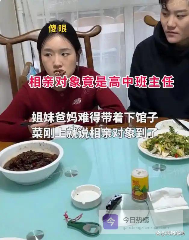 两位长辈解释说,这位便是相亲的候选人。那女子一看之下,瞬间目瞪口呆,甚至忘了咀嚼嘴里的食物,心中涌现诸多疑问:这不是自己高中时代的班主任吗?怎么一转眼竟成了相亲的对象?