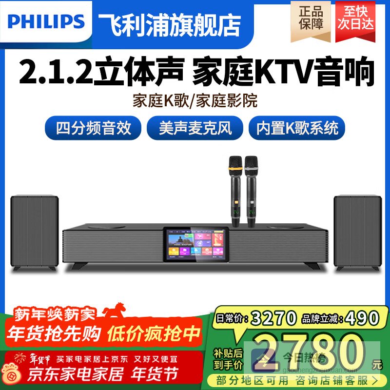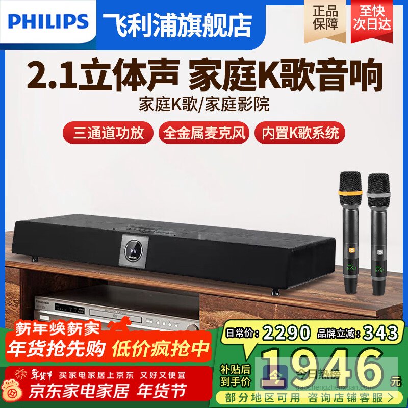 飞利浦家庭ktv音响唱歌设备新款家用点歌唱歌卡拉OK一体机高端家庭影院低音炮音响KTV家庭k歌全套设备 【升级唱歌款】双8吋炮+内置点歌系统¥